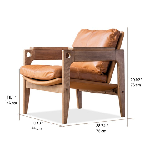 Azami – Solid Ash Wood & Genuine Leather Armchair | Reading Chair