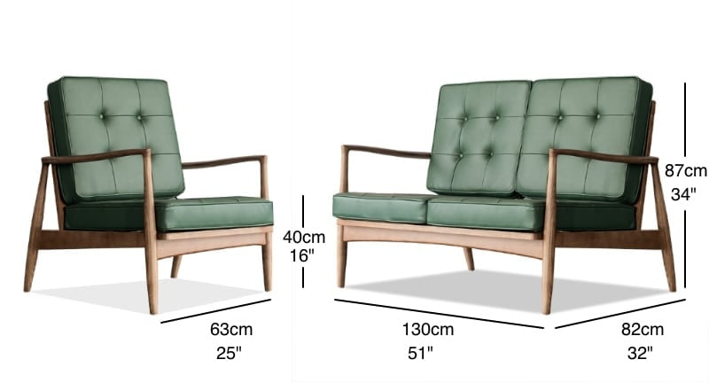 Hiroko - Solid Ash Wood & Leather Armchair | Reading Chair | Double Sofa