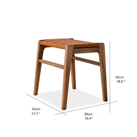 Juan – Solid Ash Wood & Leather Dining Stool | Makeup Stool